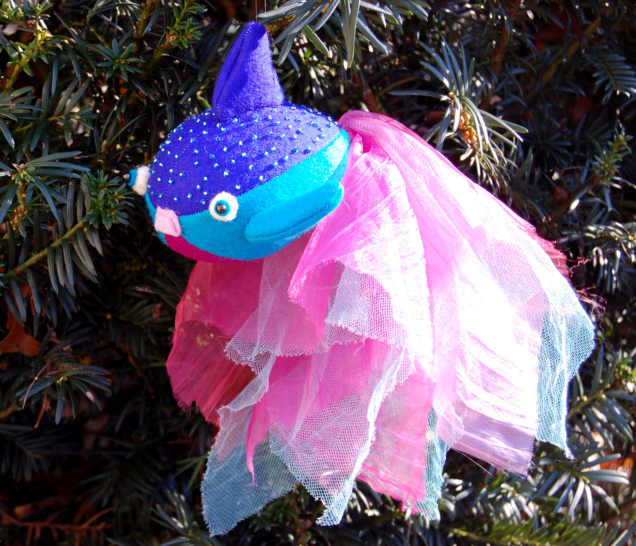 A mom contacted me the other day, through Etsy, and asked if I could make a felt fish ornament for her daughter, Fiona. It seems that Fiona's beta fish died a little while back and the family decided not to get a new fish. Her mom wanted a special ornament to remember her fish by and I agreed to make it.