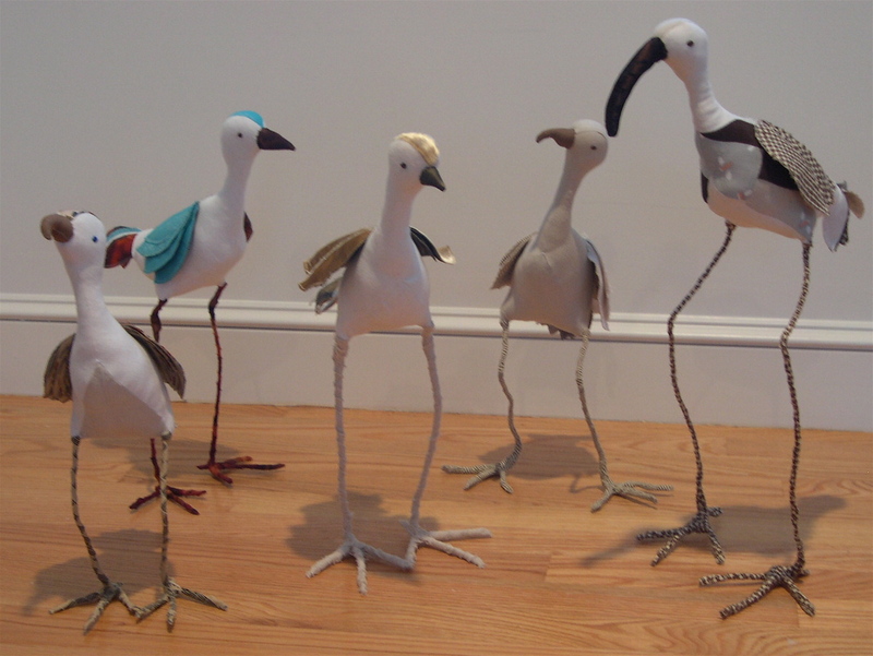 Lovely flock. When I make the legs for my felted birds I use plasticene to shape the nobbly knees, then add the fabric or fibre over it.