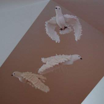 Three white birds flying on the studio ceiling today. One last tall wading bird to make, and then all 16 pieces will be complete. I have at long last located on eBay some great driftwood bases for the tall birds. I think they're going to look awesome mounted on these really rough, weathered wood panels. …