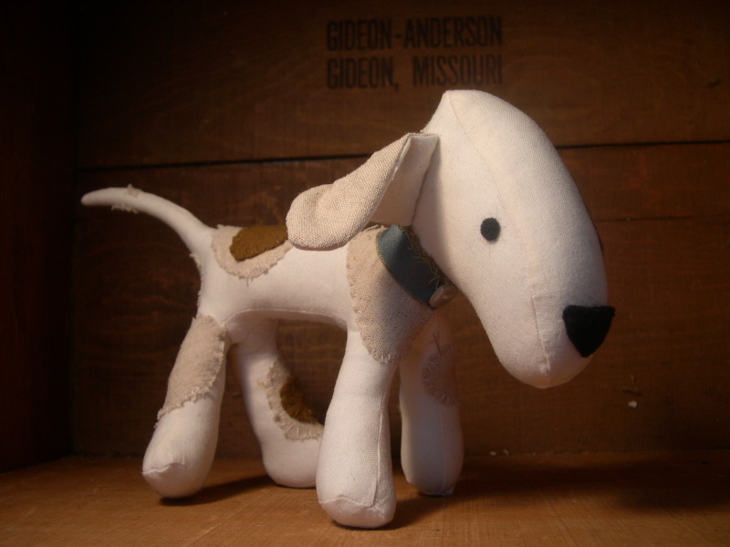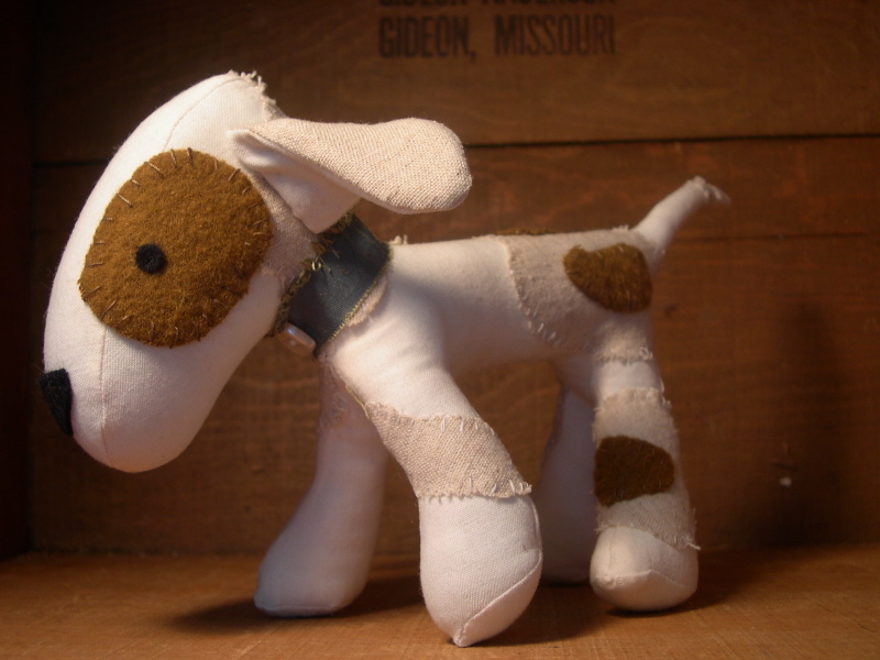 After finishing the blue bird I decided to go back and revisit one of my old patterns. I made this dog pattern a long while ago (maybe last spring?) and he was a cutie, but I was always frustrated with his legs because they kept splaying out no matter what I did. I would make the under gusset smaller and smaller, but to no avail. Since then, though, I’ve learned a bit about how to put darts in an under gusset that totally solve this problem (all of my birds are made this way).