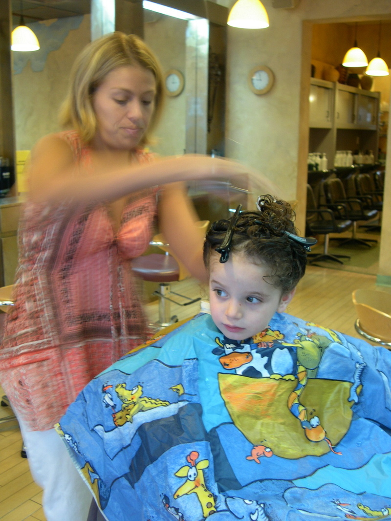 On a totally different topic, my sometimes difficult but seriously funny two-year-old got her first haircut last week.