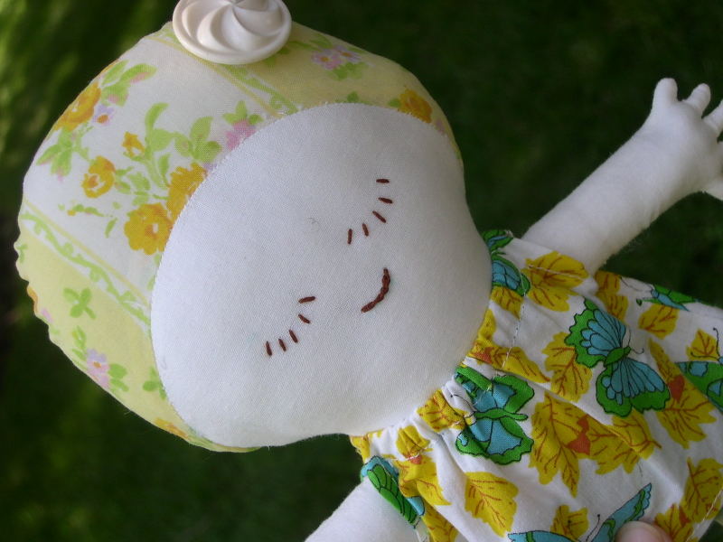 You dolls are beautiful, they remind me of a book I used to read as a child (called Emilie). The picture of your daughter napping is adorable. I love the Flea Market Fancy fabric too!
