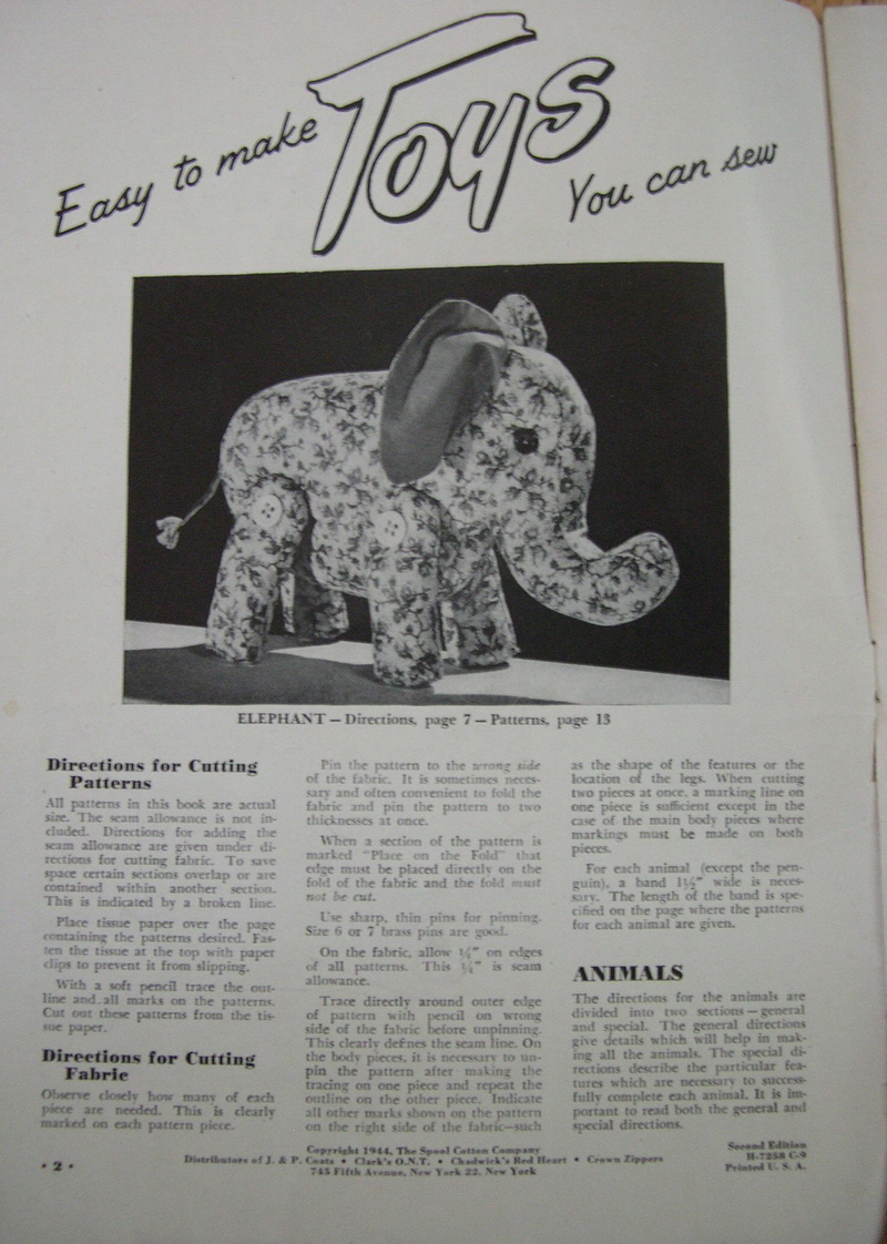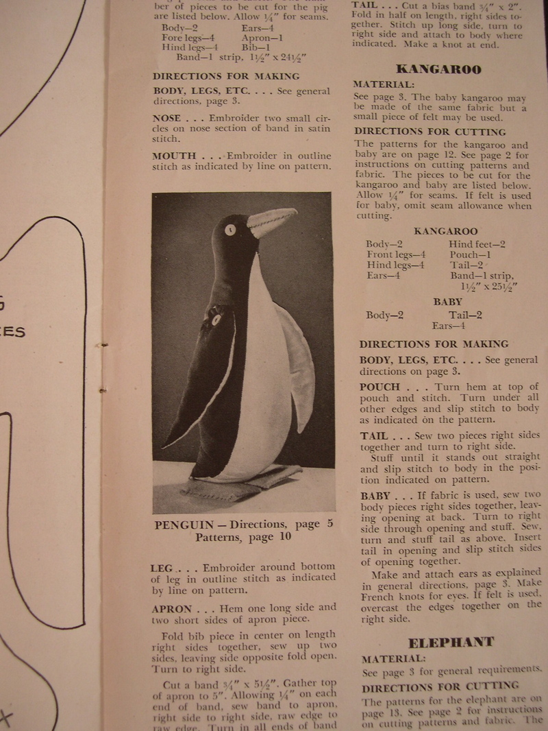 I believe she got it for pretty close to the original 1944 cover price of 10 cents. It is only about 10 pages long, but has quickly become one my prized craft books. What I love about this book is that the animal toys are jointed with buttons just like mine.