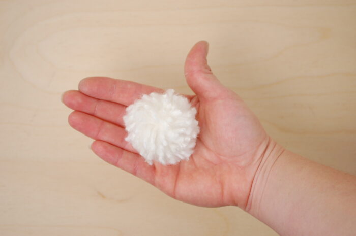 6. Stitch the pompom firmly to the back of the bunny towards the bottom and in the center.