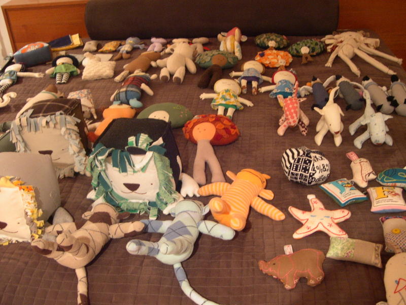 We spent much of the weekend at shul, but this afternoon I asked Charlie to help me pull out all of my finished soft toys and decide what to send to Magpie, what to sell at the November craft fair, and what to save for the solo show in March.