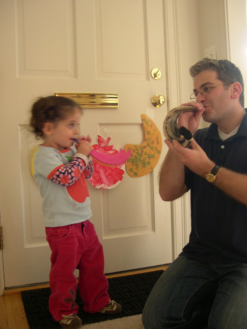 and here is Roxanne and daddy blowing their shofars.