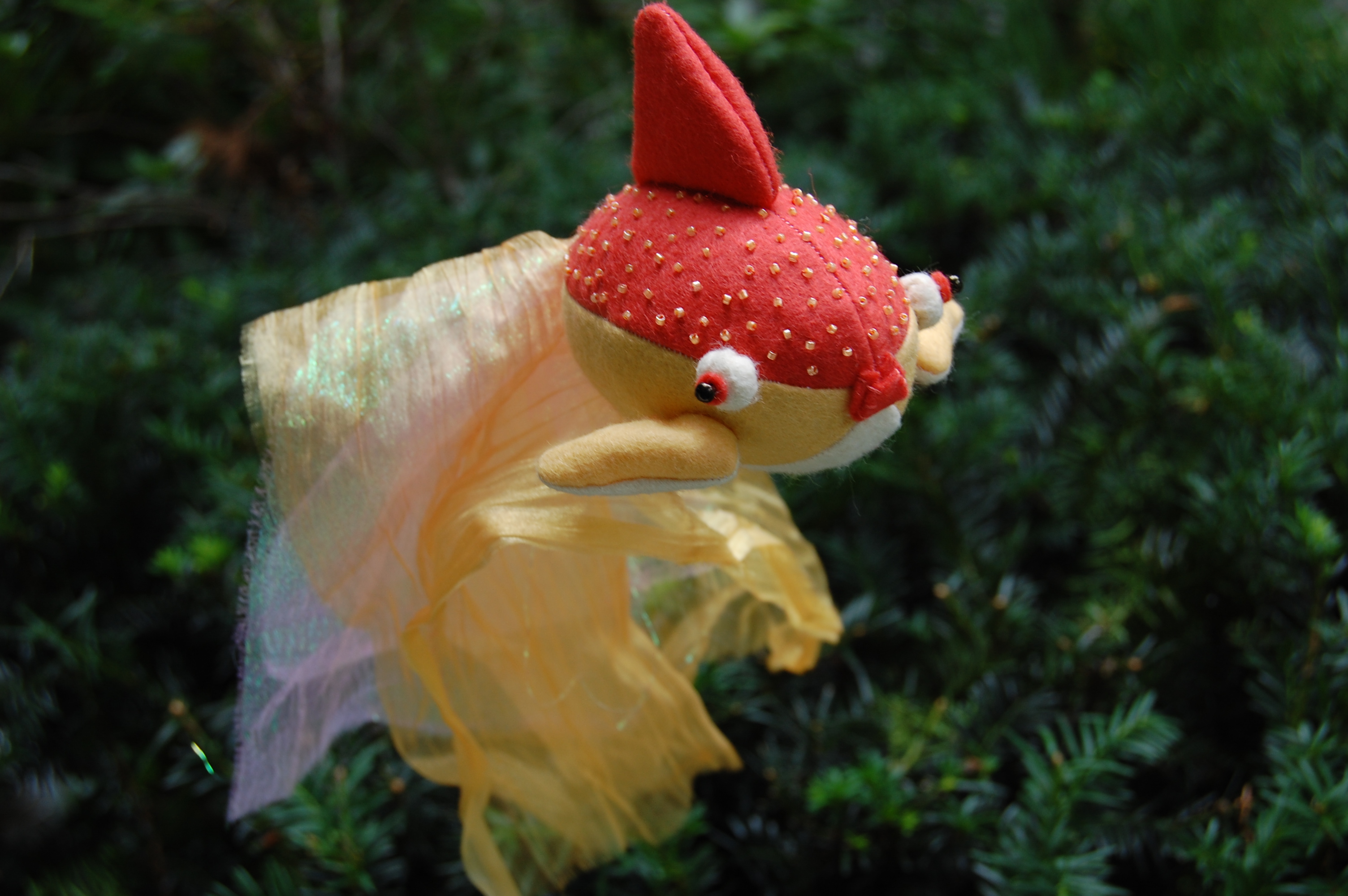 I made a goldfish today in preparation for a shop update I'm planning to do in a few weeks. It has been a long time since I've been able to devote crafting time exclusively for my Etsy shop. It is one of the things I'm looking forward to over the next two months while my girls are at day camp.