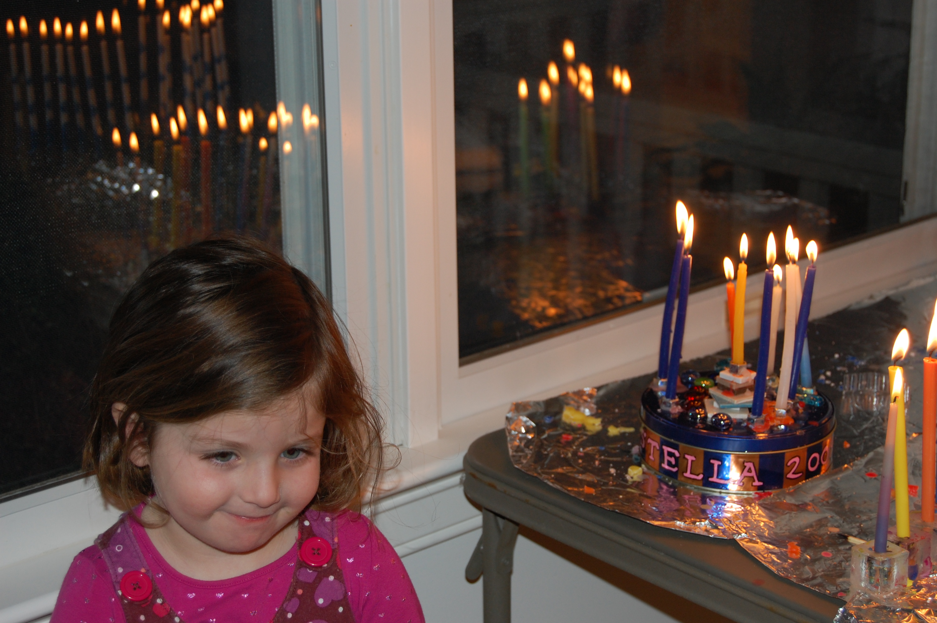 We had a lovely Chanukkah. The kids can sing the blessings and the songs in Hebrew now and it is totally adorable. We had four menorahs lit each night and with Shabbat on the last night,too, we had 38 candles lit. So nice.