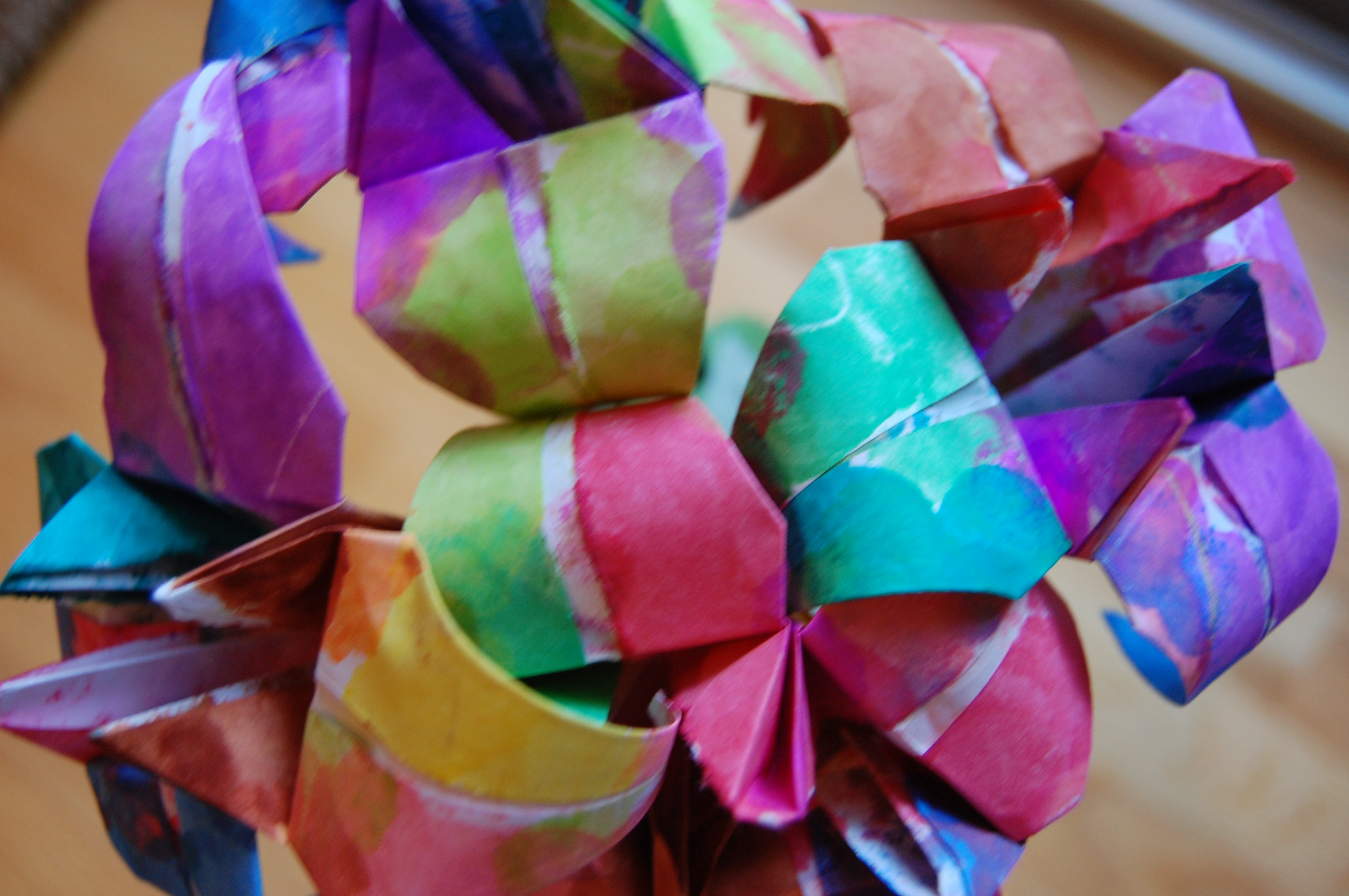The lilies are wonderful. I love the rainbow coloring. That you made so many of them for your wedding is very impressive — my husband made origami roses, but no more than 20.