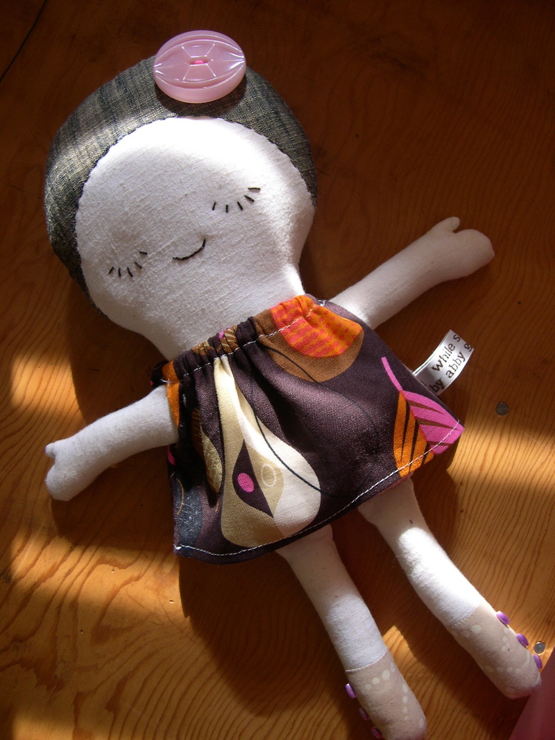 The dolls are so wonderful! I love the placement of the button – it looks like a cloche hat – too cute!