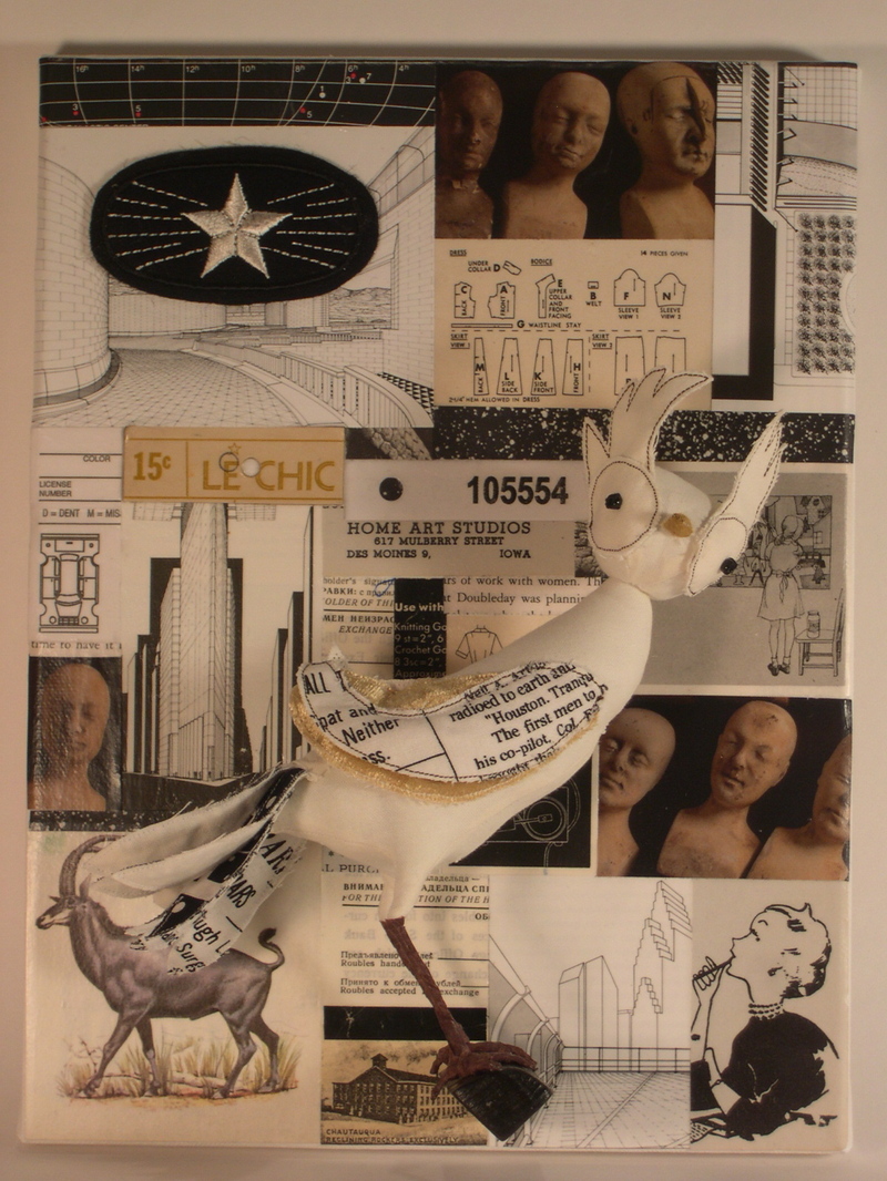 I almost feel silly posting this comment, as I seem to post something along these lines with frequency, but this piece is drop-dead gorgeous. I mean, just gorgeous. The layering of fabric to compose the eyes and the shape of the feather pieces is just brilliant.