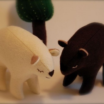 I'm home on a rainy day sewing little felt bears and a sparkly felt tree.