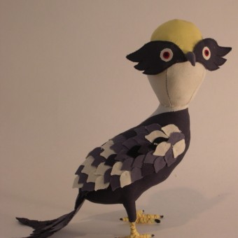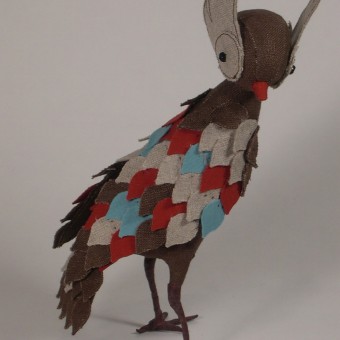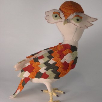 A new small raptor.  The grey fabric was actually originally a white large scale floral print that I overdyed.  Charlie says she looks Egyptian with those eyes. I love wool stuffing. It is such a pleasure to work with – really soft and fluffy and it smells like lanolin. It has some different properties thanRead More →