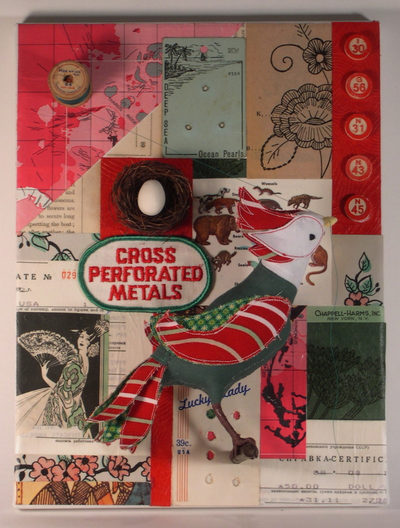 mixed media collage and soft sculpture