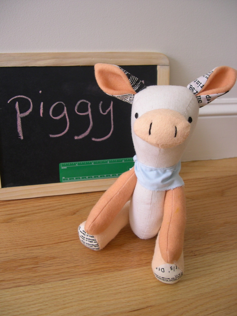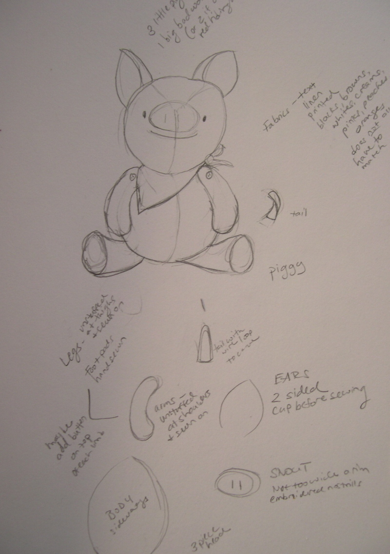 the drawing looked Piglet-ish (of Winnie the Pooh fame) but once done up he looks darling!