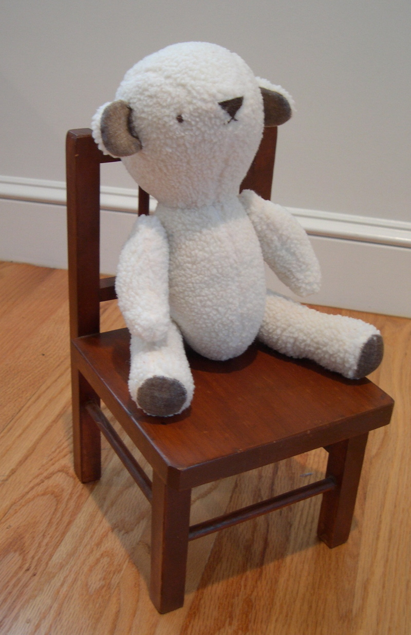 A really mod crystal wine stopper for $4, and this excellent doll’s chair. I’ve been looking for a small chair for my favorite softies to sit on in the craft room and this one is really perfect. My white nubbly bear looks so comfy now.