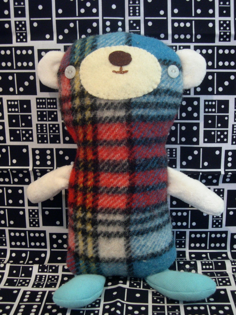 As is so often the case, the first photo I took of this guy was the best. Does anyone else find that to be true? I usually take about a dozen photos of a toy and choose among them to post here and more often than not, the very first one is the best one. In fact, now that I think about it, when I make a series of toys, the first one is usually the best. It has a freshness and excitement about it that the other ones often just don’t convey. Even though I do think that practice makes perfect, in creating art or craft the first attempt can sometimes be the best one.