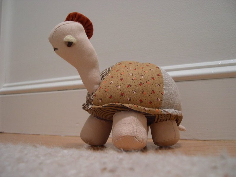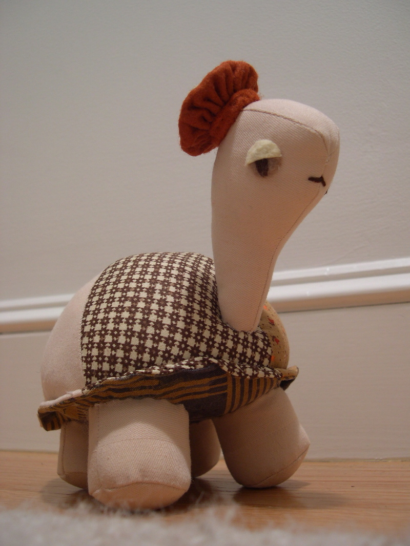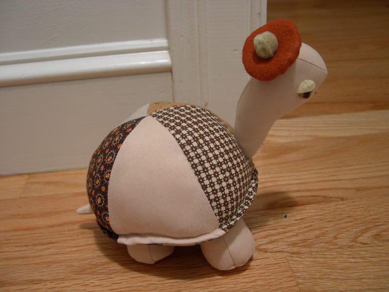 turtle – a second try November 19, 2006 You didn’t think I was going to give up, did you? I rarely give up. I did Teach For America, after all. We don’t give up easily. A new turtle with a few corrections. And a jaunty cap.