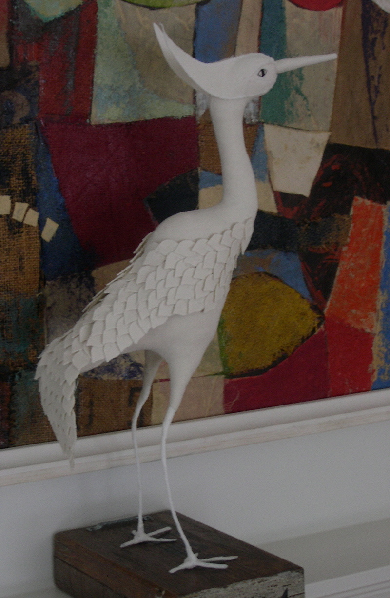 The bird is fabulous..how tall is he? And please tell us about the wall behind him. gorgeous.