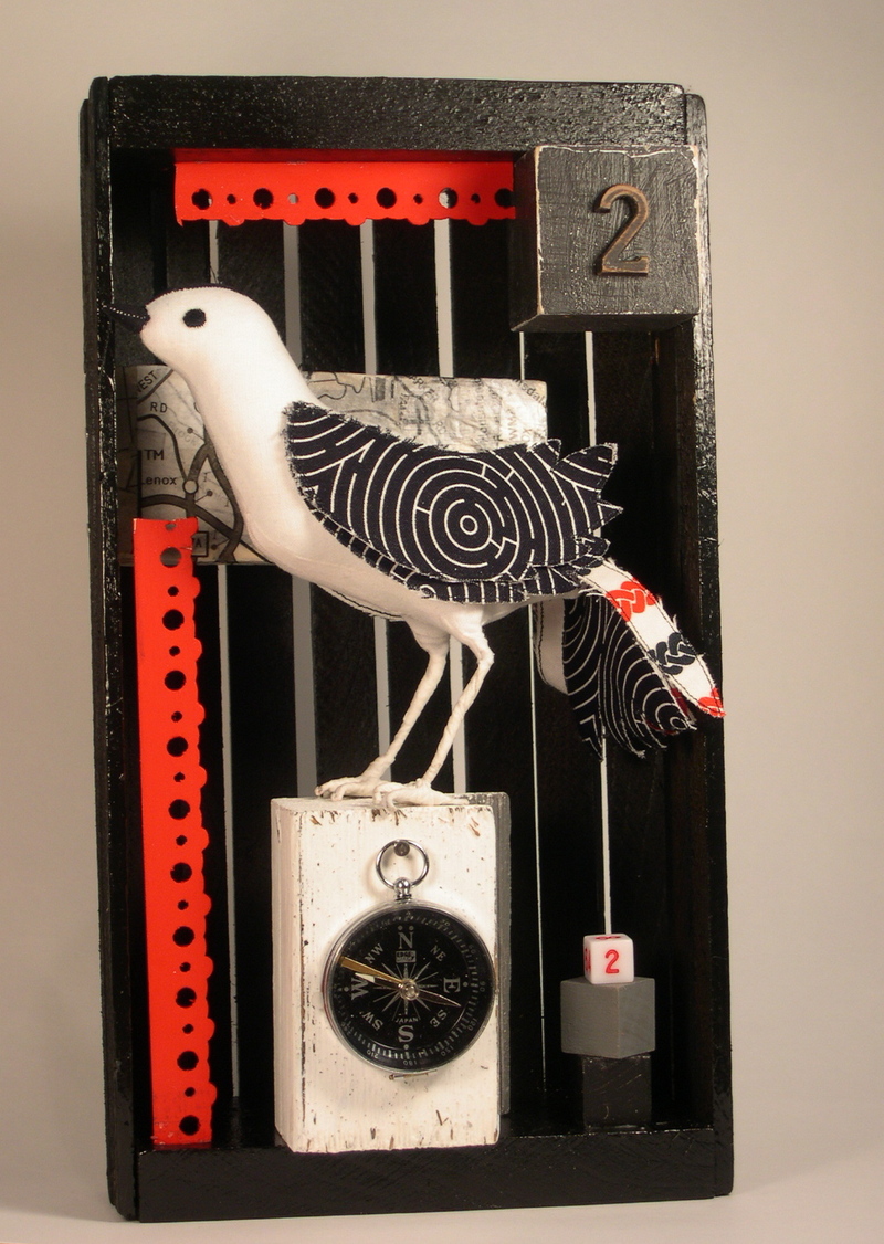 All of the elements in this piece play so beautifully off of each other – the various textures, the colors, the print on the bird’s wing. It all works so amazingly well together. What a design eye you have.
